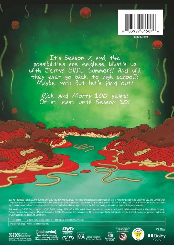 With Blu-ray’s unsurpassed picture and sound, Rick and Morty: The Complete Seventh Season Blu-ray release will include 1080p Full HD Video with DTS-HD Master Audio for English 5.1.