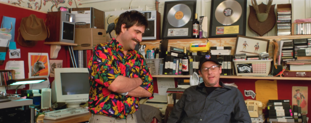 As mentioned, though, Pavement didn’t want a standard documentary, and Pavements is anything but. It’s not long into the movie before Perry plays his true hand. He’s not only directing a documentary about Pavement, but he’s also making an off-broadway jukebox musical about Pavement that re-interprets their songs. Not only that, he’s also making a museum dedicated to Pavement. Not only not only that, he’s also making a big-budget Pavement biopic with an all-star cast that seems primed for awards season. All at the same time.