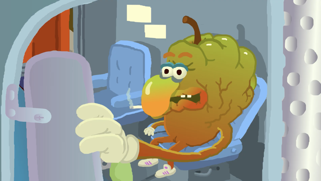 There were a few other shorts of note that I enjoyed. Hurikán, described as a “deep-fried romance from Prague”, follows the literally pigheaded titular character as he offers to resupply a beer stand where he has a crush on the bartender, only to find himself on the beer run from Hell. Gritty, darkly comic, and with great music, it brings to mind something out of the alternative animation of the 1990s when the film is set. Bunnyhood is a punky short from the UK that feels like a zine comic come to life. In it, Bobby learns that her mother may not always be telling the truth when a promised fast food dinner ends up being a trip to the hospital. The whole short is gleefully surreal and anarchic but not to the extent to where you can’t figure things out. Told in a crude but endearingly handcrafted animation style, this was one of my favorite watches of the selections this year. View from the Floor is a 5 minute piece in which Mindie Lind, a singer without legs, discusses her brief brush with fame, where she discovers that it wasn’t so much about her talent as it was about “inspiration porn.” A thought-provoking and funny take on how disability is perceived in the media, it’s a decent piece in its own. However, the short is actually a proof-of-concept for a feature length animated documentary of the same title, and that’s something I really hope gets off the ground because based on this, I’d love to see more.