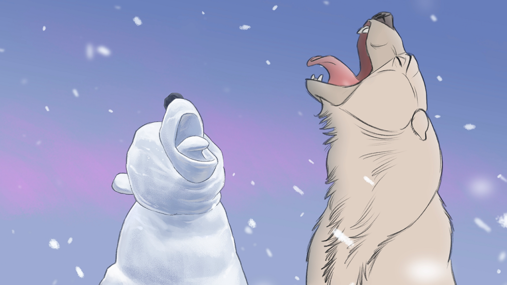 Finally, the environmental-themed short Snow Bear follows a lonely polar bear who, unable to find others like him, builds a snowbear to spend time with. Unfortunately, it can’t stay cold forever. The short is directed by Aaron Blaise, a veteran animator who did the character animation for the Beast in Beauty and the Beast and directed Brother Bear among working in other Disney projects, so it’s no surprise that this has the best animation of the entire set. What is surprising is that Aaron apparently animated this himself, while still looking like the professional-grade work he did for the House of Mouse. (I asked him how long it took to make the film after, and he said three years, which is still less than I expected.) This was a beautiful short that will warm your heart.